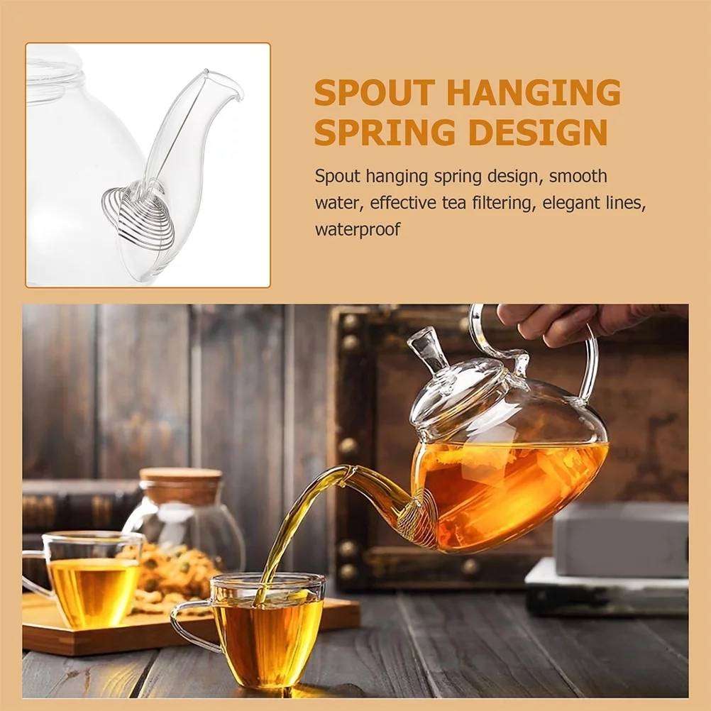 • The spout is designed with a hanging spring, which makes the water flow smoothly and effectively filters the tea leaves