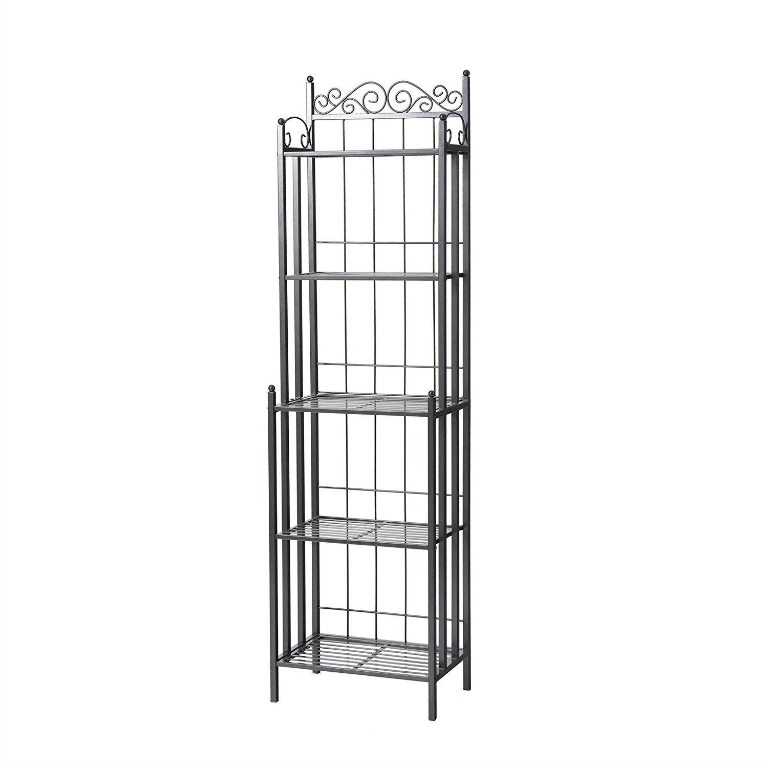 Narrow Wrought Iron Bakers Rack with 5 Shelves